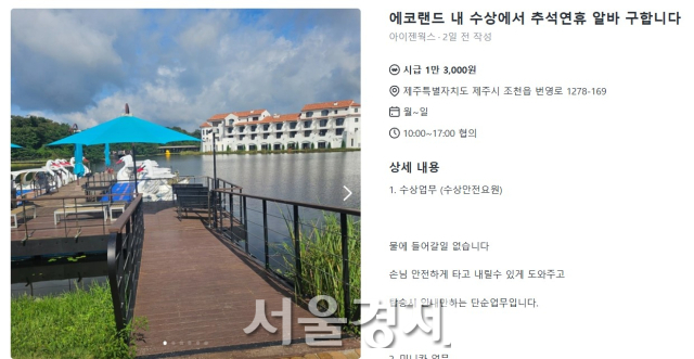 30일 서울경제신문이 직접 구인 구직 플랫폼을 들여다보니, 반려견이나 반려묘 돌봄을 모집하는 공고는 기본이고 연휴 기간 이용객이 급증하는 고속도로 휴게소 알바부터 성묘객 맞이를 위한 공원묘지 잔디 시공 알바, 중학생 수학 특별과외 알바까지 각양각색 '이색 알바'들이 구직자를 기다리고 있었다.
