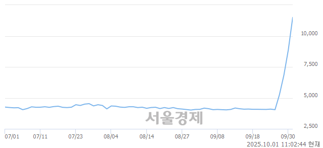 오전 11시 2분 현재 동양우(001525)가 +29.99% 오른 11,530원(▲2,660)으로 장중 상한가에 진입했다. 거래대금은 24억8,586만, 거래량은 24만3,838주를 기록하고 있다.