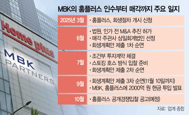 MBK파트너스는 2015년 홈플러스를 7조 2000억 원에 인수했지만 업황 악화와 부채 부담으로 결국 회생절차에 들어갔다. MBK는 최근 2000억 원 증여를 포함해 총 5000억 원의 지원을 약속하며 대주주 책임을 강조했지만 회생 성사 여부는 불투명한 상황이다.
