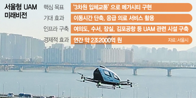 오세훈 서울시장은 지난해 11월 ‘UAM·인공지능·양자 신기술 협력 컨퍼런스’에서 ‘서울형 UAM 비전’을 발표하며 “서울이 세계적인 ‘3차원 입체 교통’ 서비스가 실현되고 도시 간 연결성이 획기적으로 개선된다면 공간적인 한계를 뛰어넘는 ‘메가시티’ 시대가 열릴 것”이라고 밝힌 바 있다.
