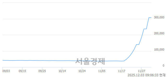 천일고속은 전일 상한가(307,000원, ▲70,500, +29.81%)를 기록한데 이어 이틀 연속 강한 상승세를 이어가고 있다.